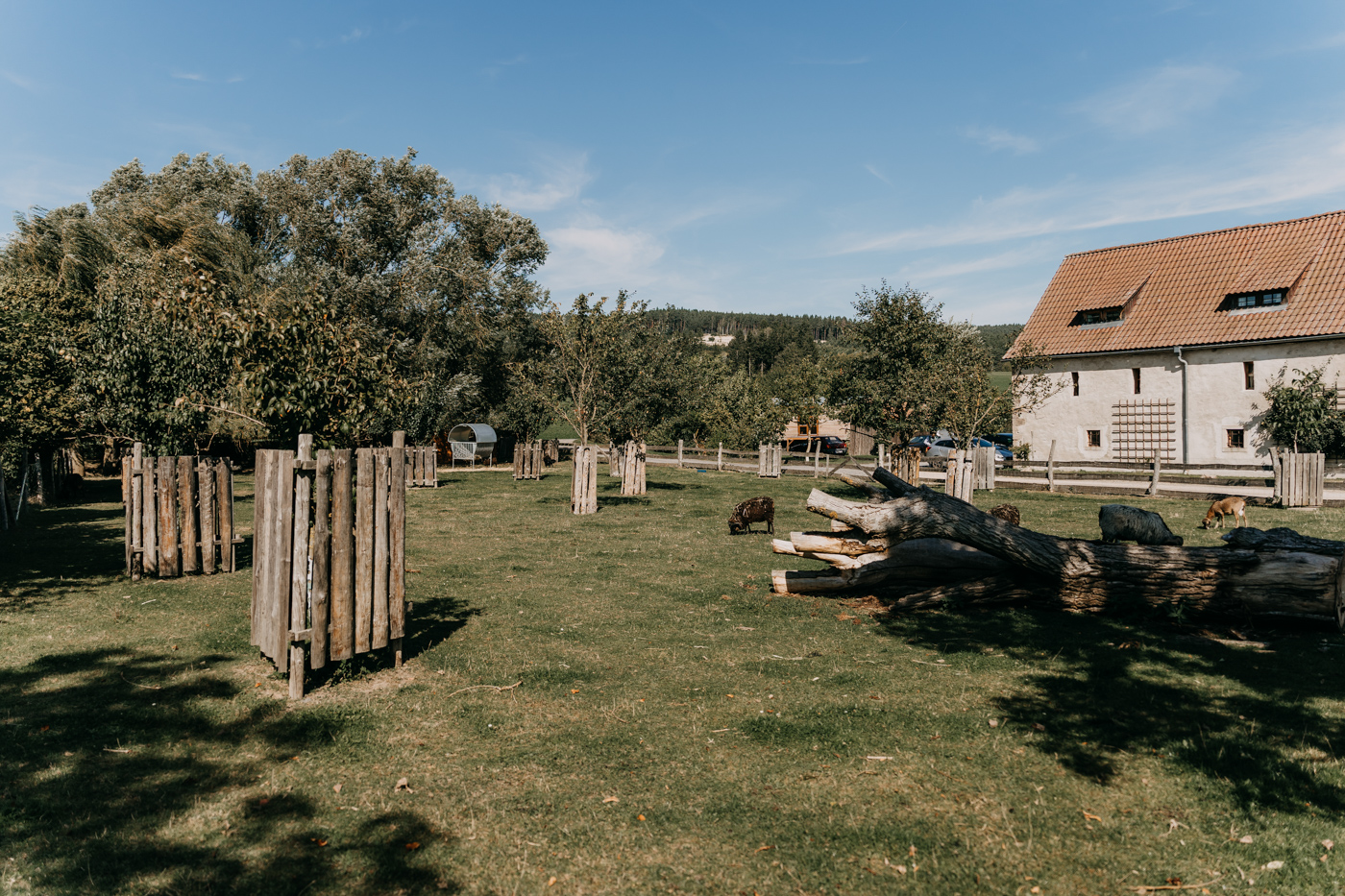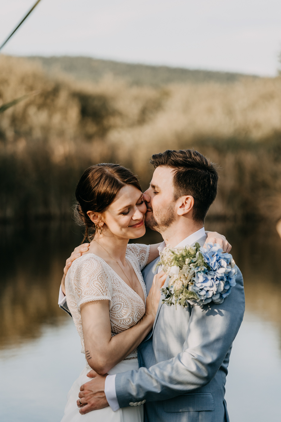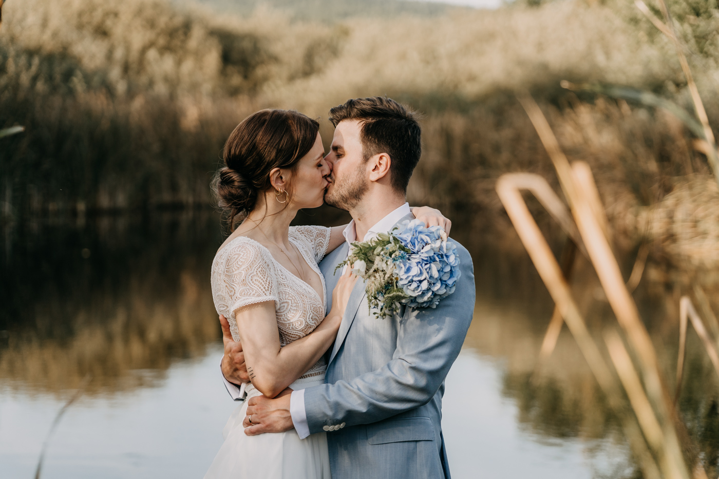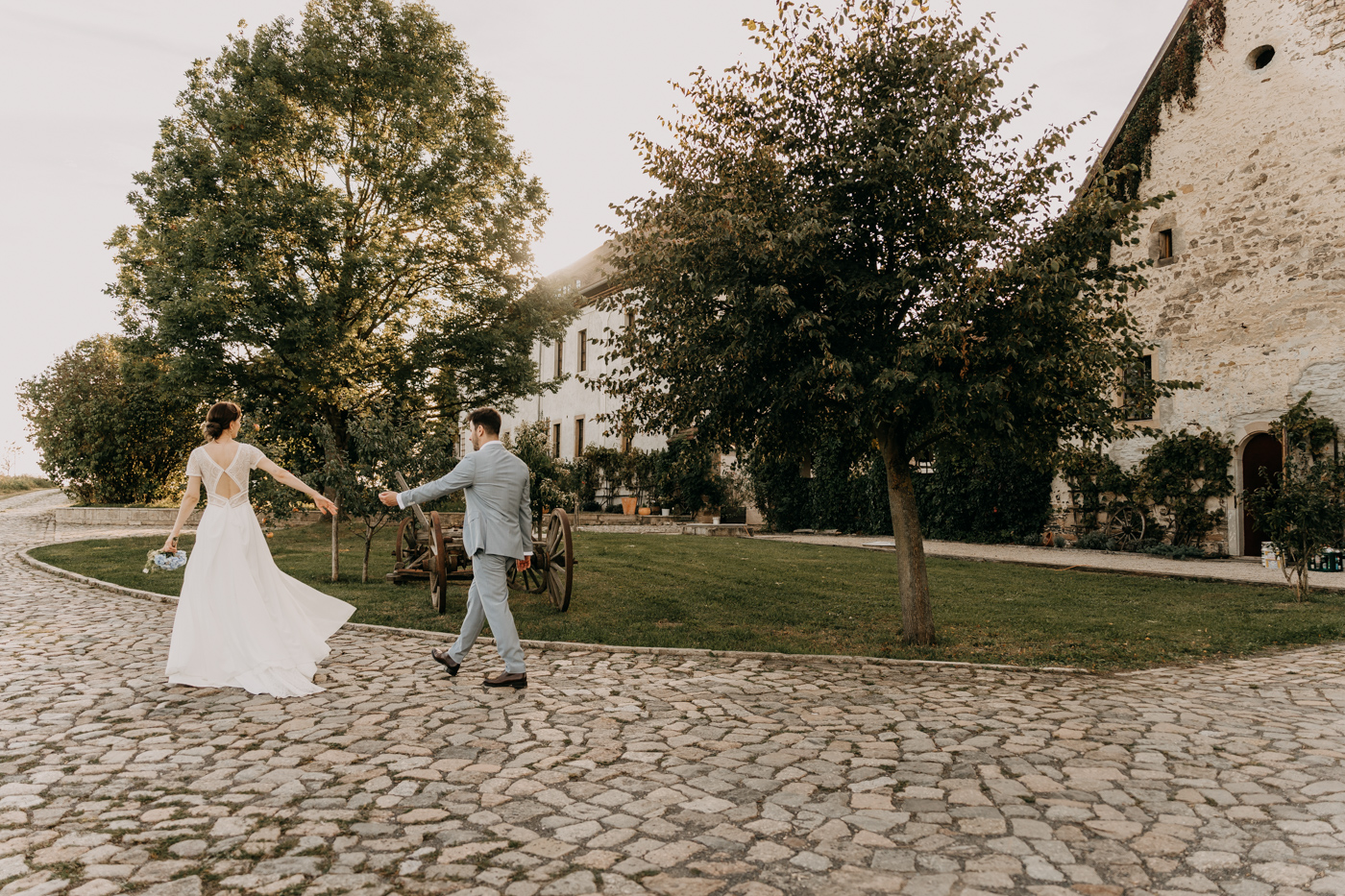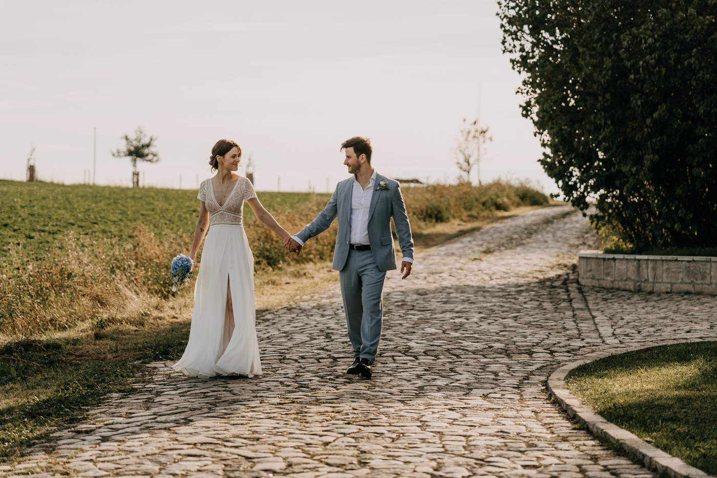 Natürlich durfte auch ein romantisches Paarshooting nicht fehlen. Rund um das Rittergut Positz gibt es unglaublich viel Natur – Wiesen, Felder und sogar Rinder, die neugierig zuschauten. Zwischen all dem entstanden entspannte, intime Bilder, die perfekt zu einer Land- und Scheunenhochzeit passen: natürlich, ruhig und voller Nähe.