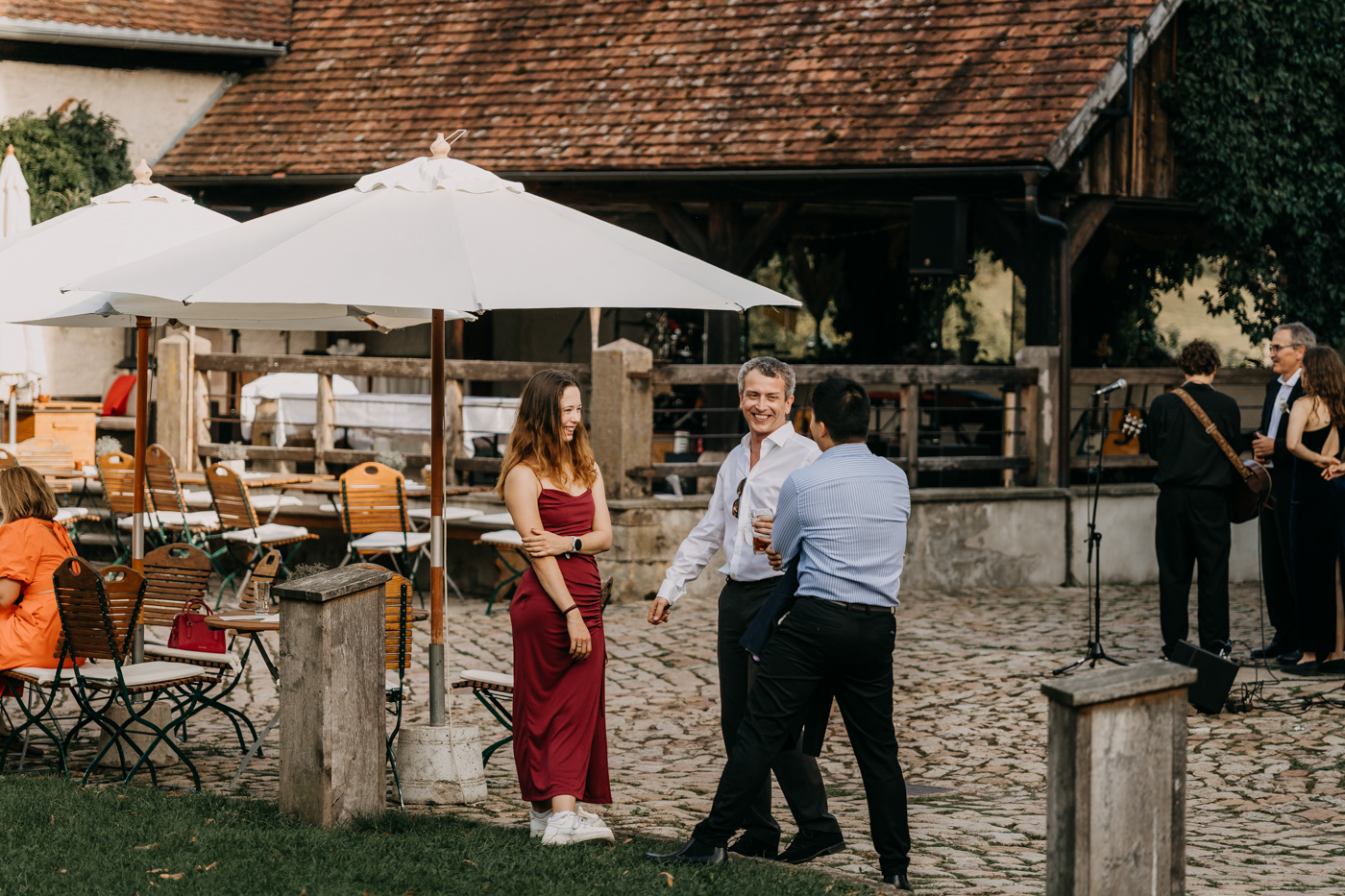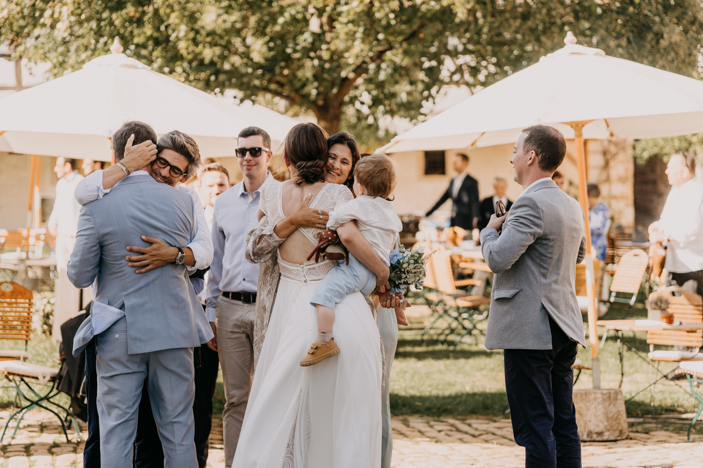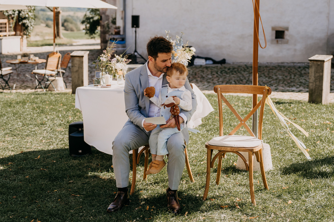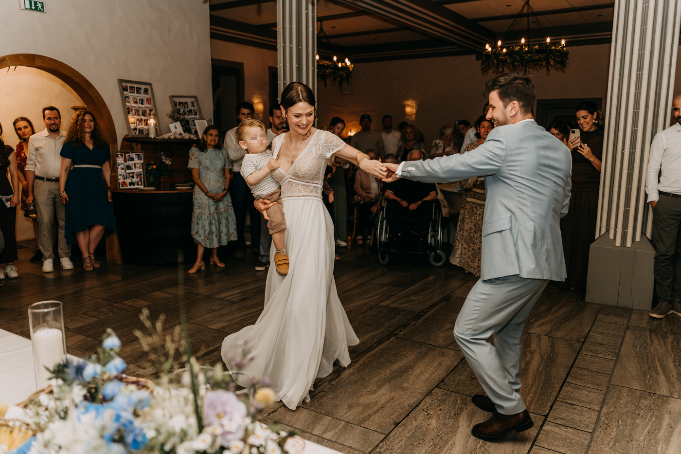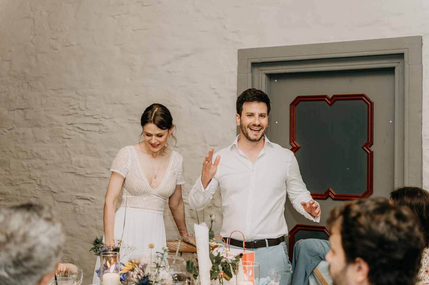 Die freie Trauung im Innenhof des Ritterguts war eines der emotionalen Highlights der Hochzeit. Umgeben von historischen Mauern, spätsommerlichem Grün und ihren liebsten Menschen gaben sich Jule und Gustavo das Ja-Wort. Eine Zeremonie voller persönlicher Worte, ehrlicher Emotionen und ganz viel Lachen – genau so, wie eine freie Trauung sein sollte.
