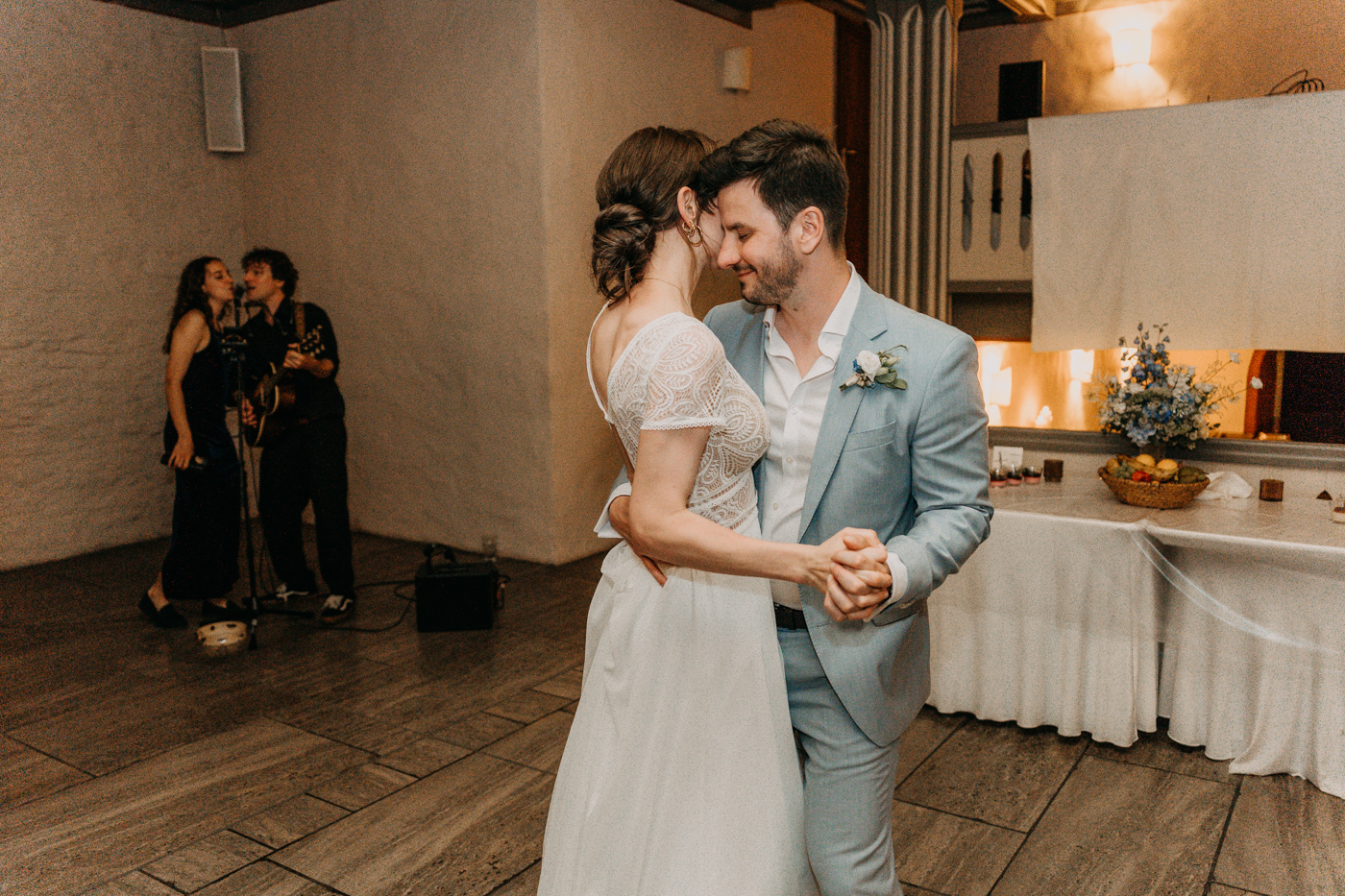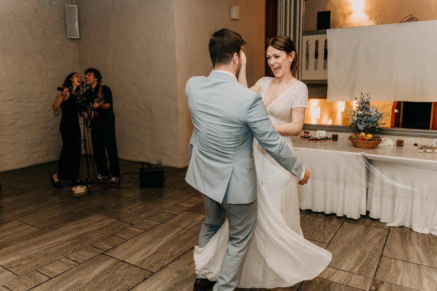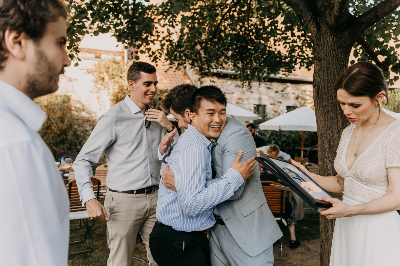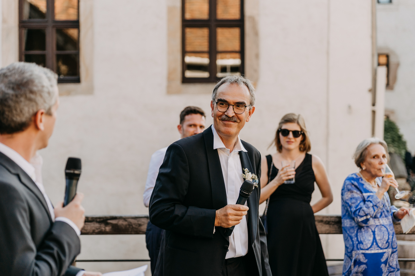 Die freie Trauung im Innenhof des Ritterguts war eines der emotionalen Highlights der Hochzeit. Umgeben von historischen Mauern, spätsommerlichem Grün und ihren liebsten Menschen gaben sich Jule und Gustavo das Ja-Wort. Eine Zeremonie voller persönlicher Worte, ehrlicher Emotionen und ganz viel Lachen – genau so, wie eine freie Trauung sein sollte.