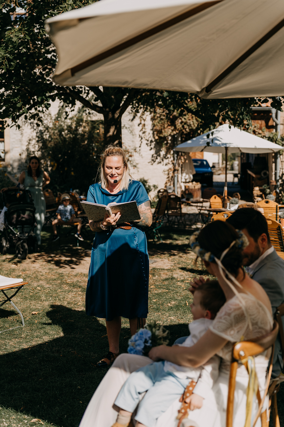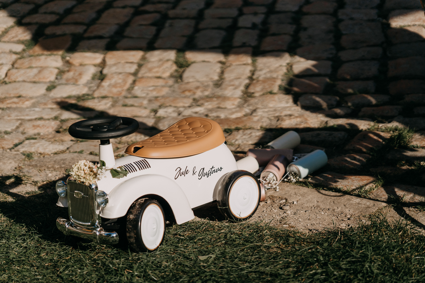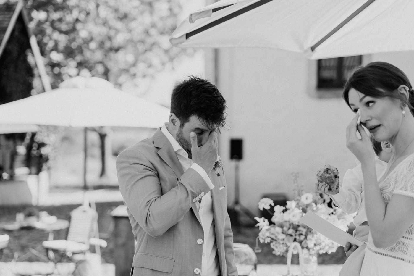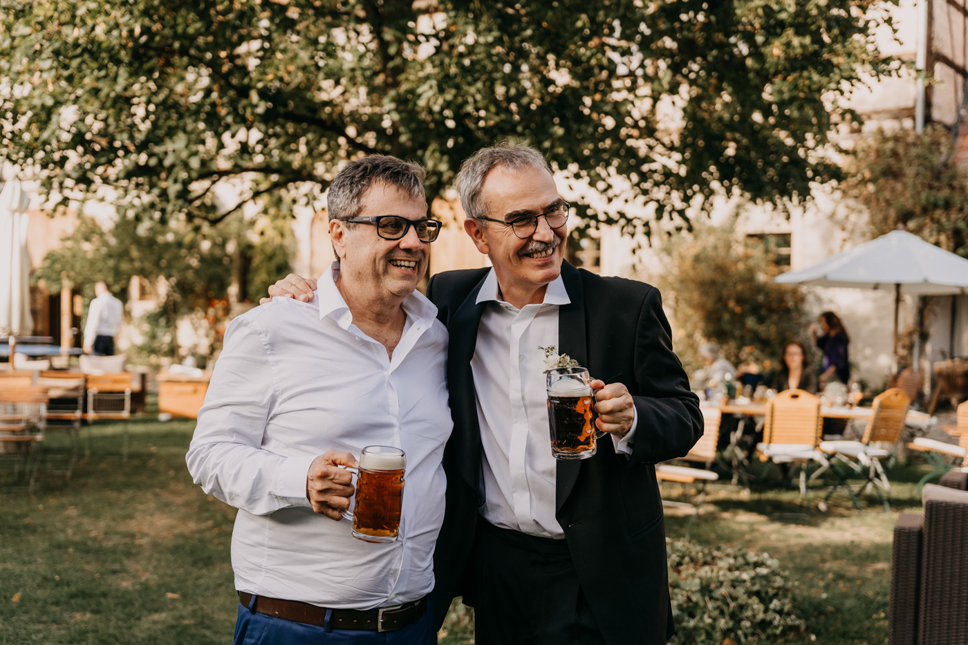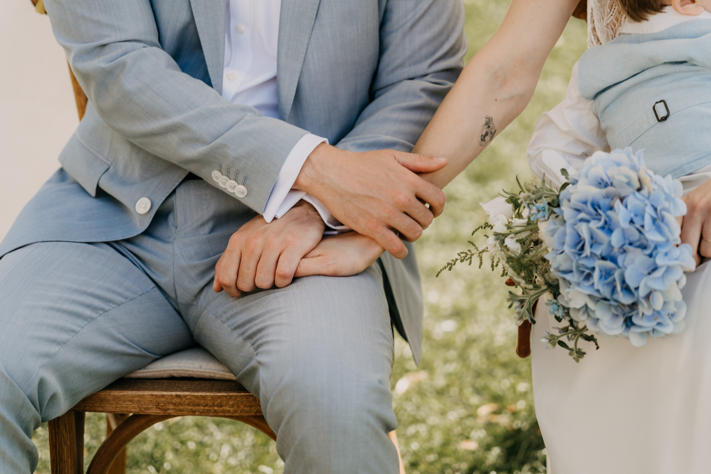 Die freie Trauung im Innenhof des Ritterguts war eines der emotionalen Highlights der Hochzeit. Umgeben von historischen Mauern, spätsommerlichem Grün und ihren liebsten Menschen gaben sich Jule und Gustavo das Ja-Wort. Eine Zeremonie voller persönlicher Worte, ehrlicher Emotionen und ganz viel Lachen – genau so, wie eine freie Trauung sein sollte.