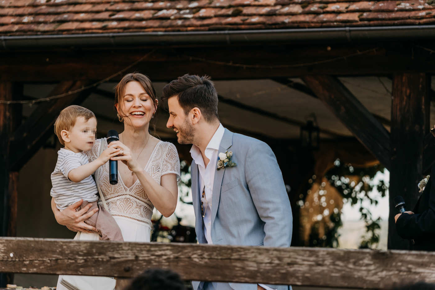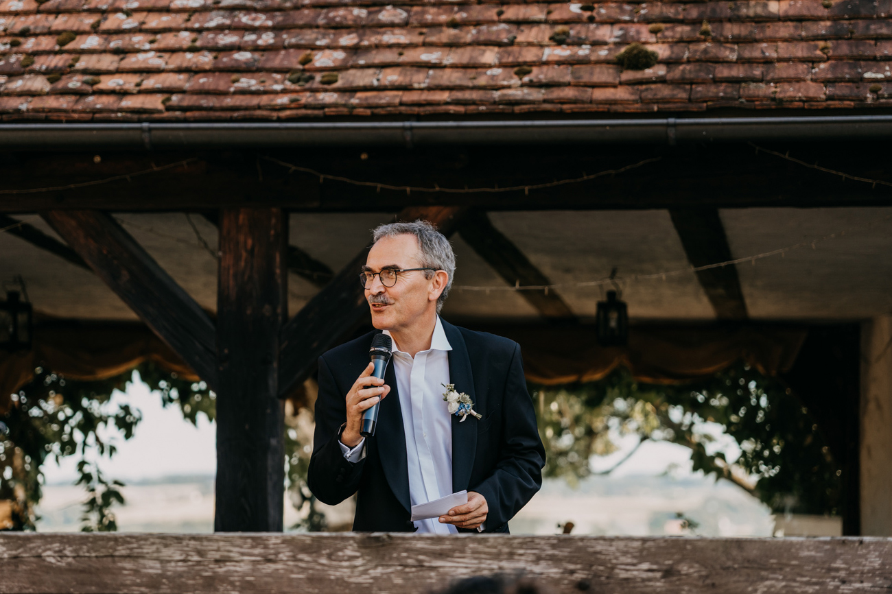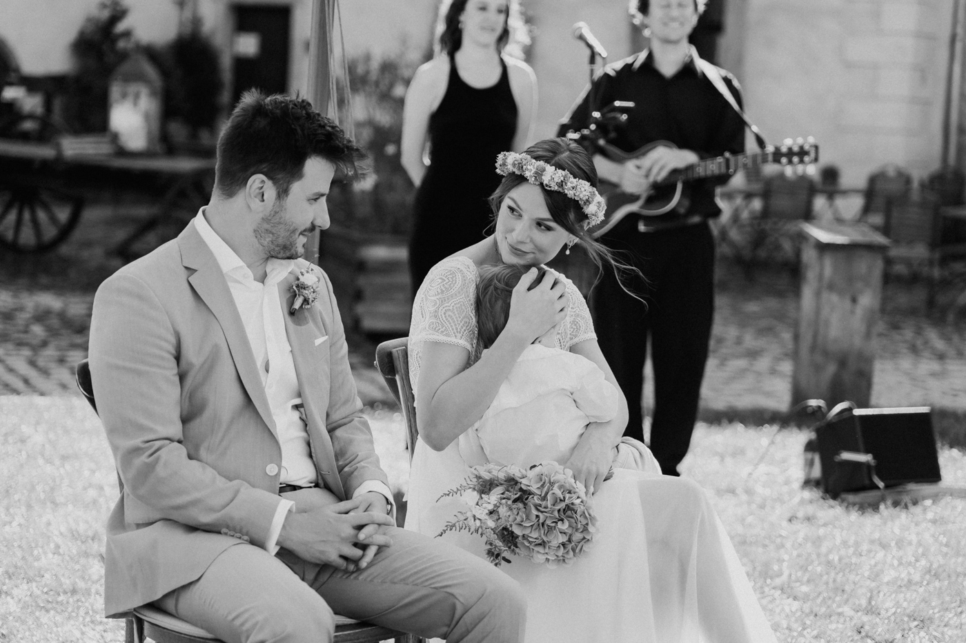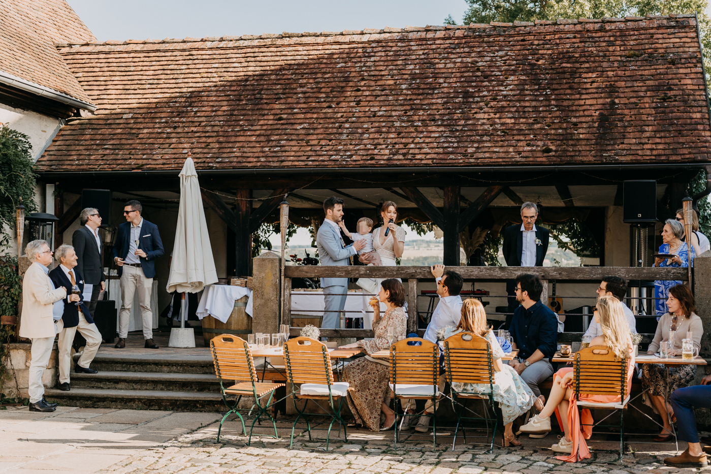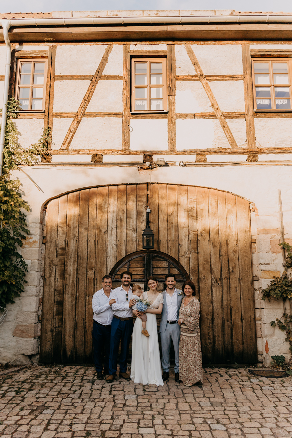 Die freie Trauung im Innenhof des Ritterguts war eines der emotionalen Highlights der Hochzeit. Umgeben von historischen Mauern, spätsommerlichem Grün und ihren liebsten Menschen gaben sich Jule und Gustavo das Ja-Wort. Eine Zeremonie voller persönlicher Worte, ehrlicher Emotionen und ganz viel Lachen – genau so, wie eine freie Trauung sein sollte.