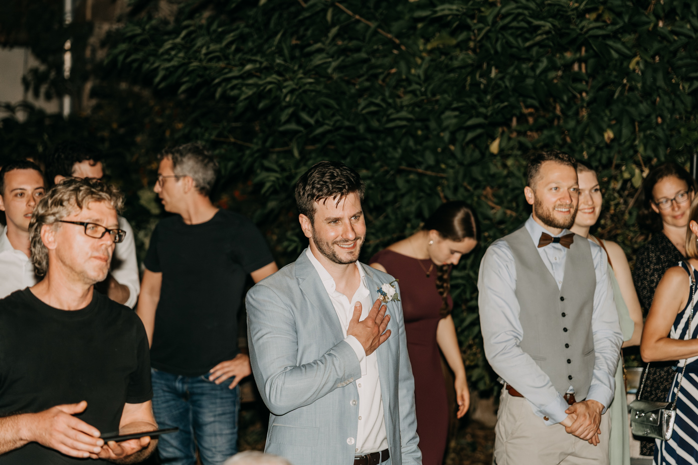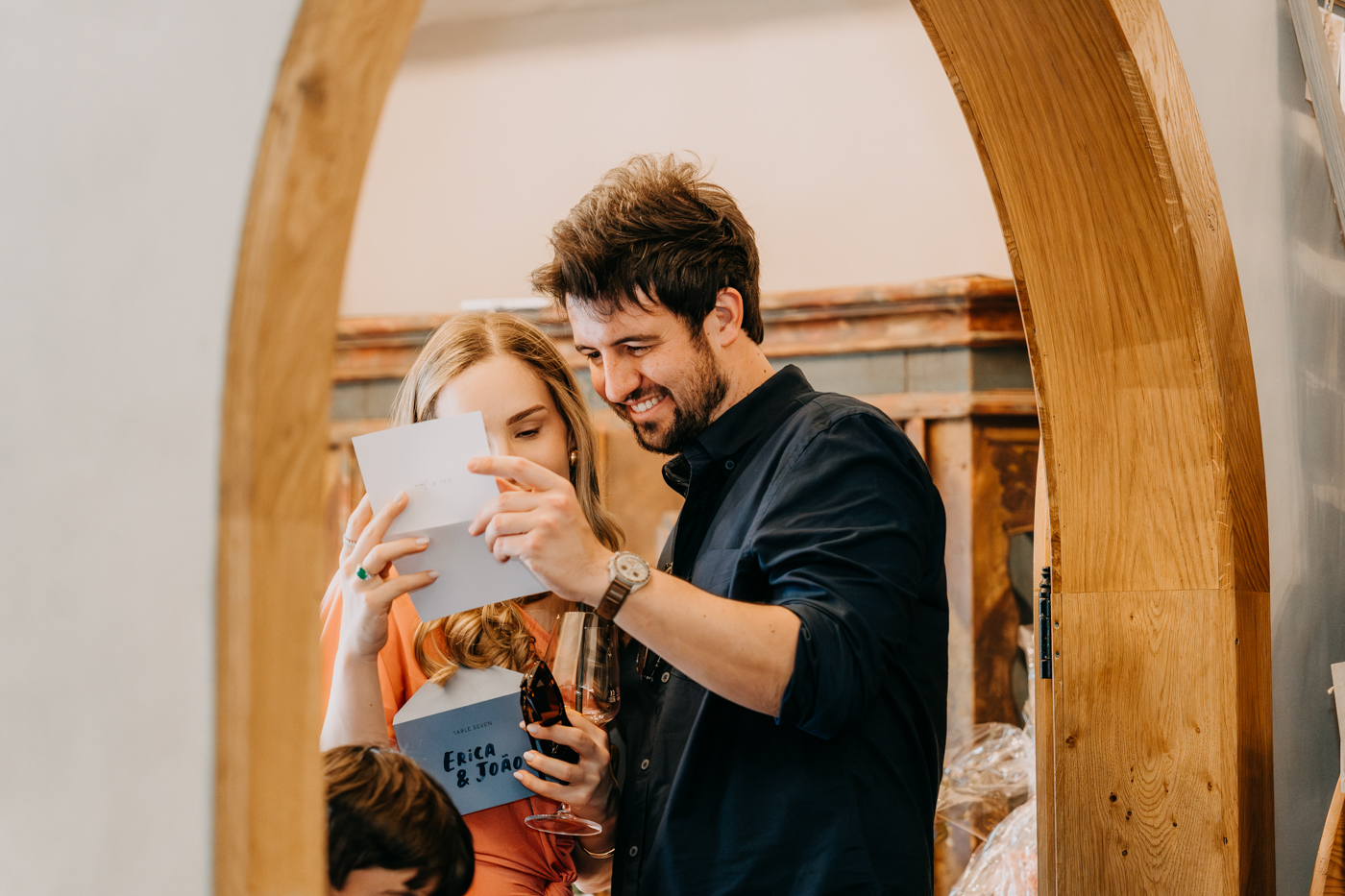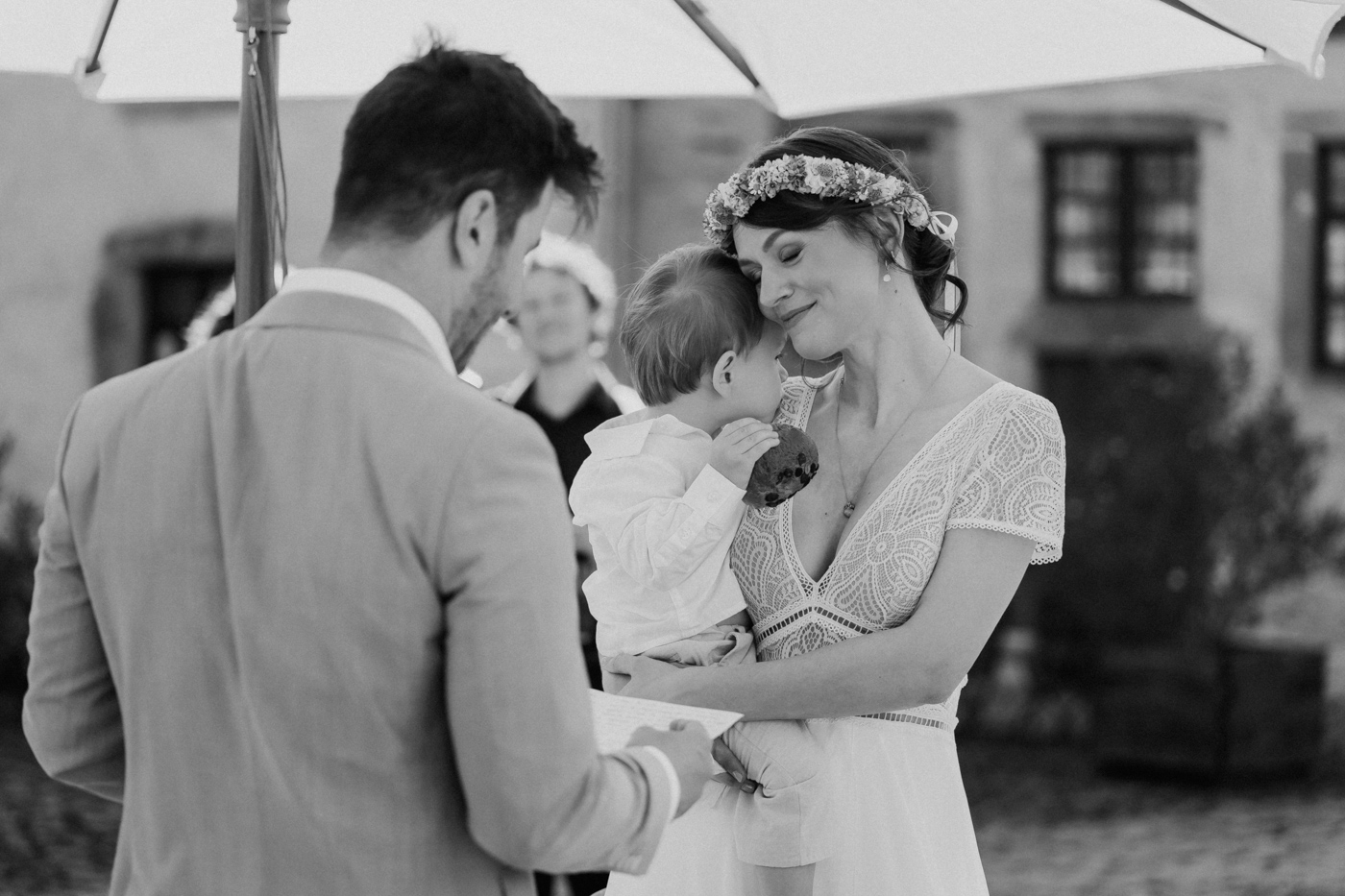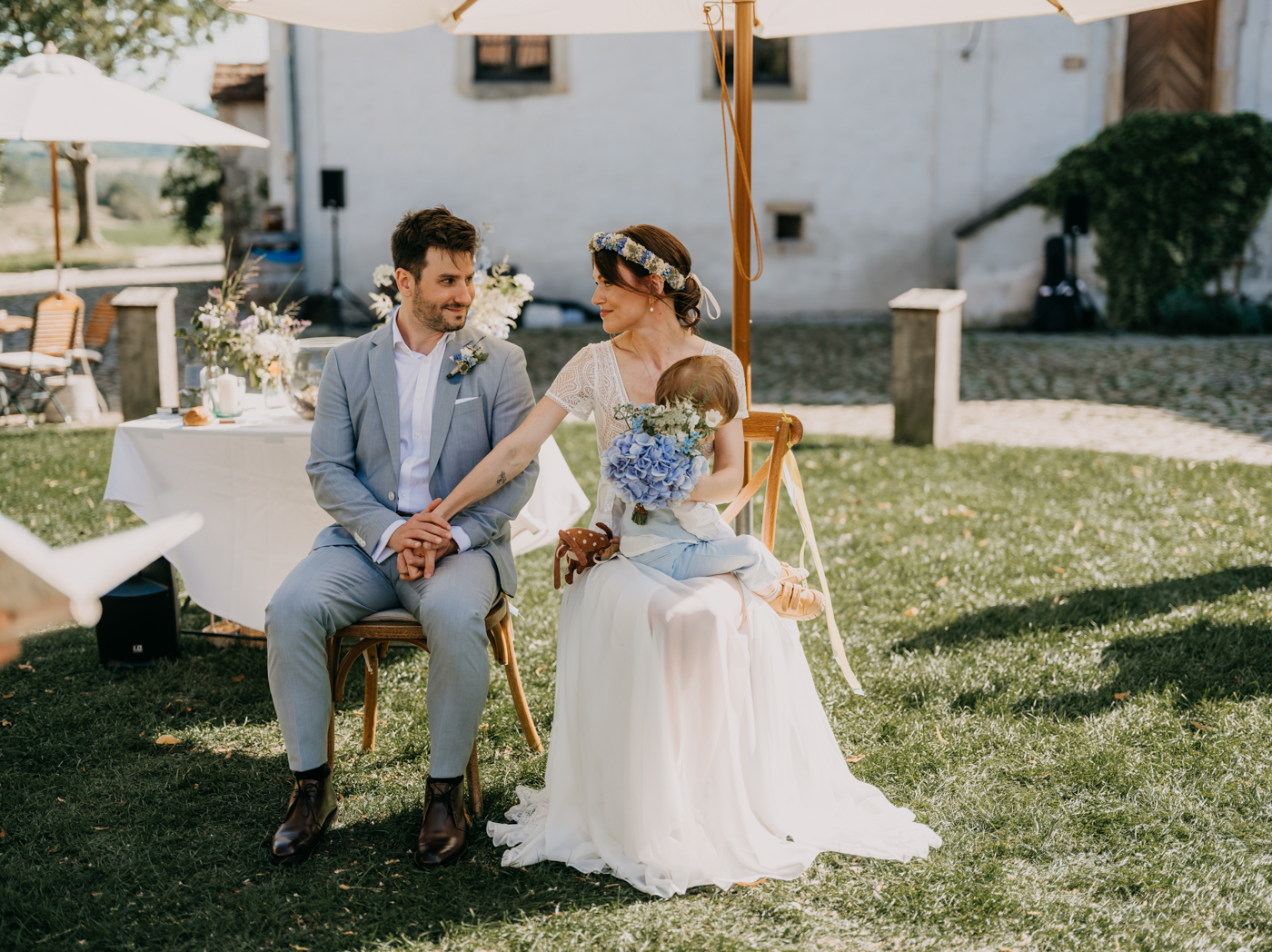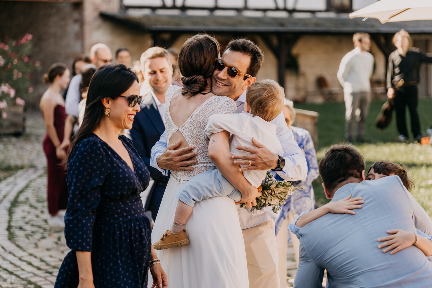 Die freie Trauung im Innenhof des Ritterguts war eines der emotionalen Highlights der Hochzeit. Umgeben von historischen Mauern, spätsommerlichem Grün und ihren liebsten Menschen gaben sich Jule und Gustavo das Ja-Wort. Eine Zeremonie voller persönlicher Worte, ehrlicher Emotionen und ganz viel Lachen – genau so, wie eine freie Trauung sein sollte.