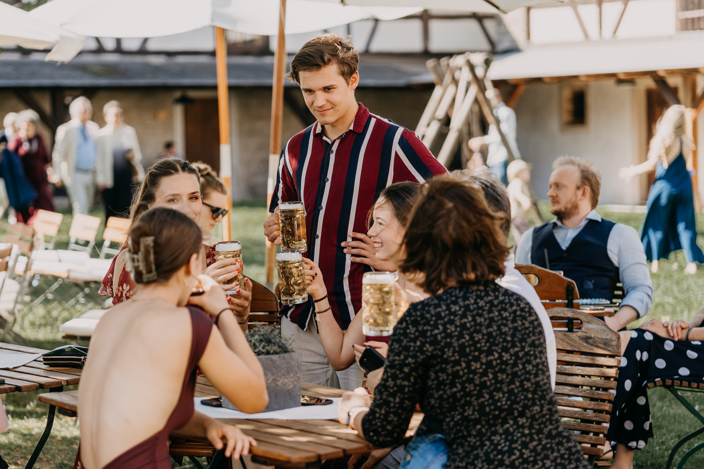 Im Anschluss wurde draußen ausgelassen gefeiert. Das Rittergut Positz bietet dafür ideale Möglichkeiten: viel Platz, Natur und eine wunderbar ungezwungene Atmosphäre. Gemeinsam mit ihren Gästen verbrachten Jule und Gustavo eine großartige Zeit mit Spielen, Gesprächen und jeder Menge guter Laune. Für mich als Hochzeitsfotograf sind genau das die Momente, in denen authentische und lebendige Hochzeitsfotos entstehen.
