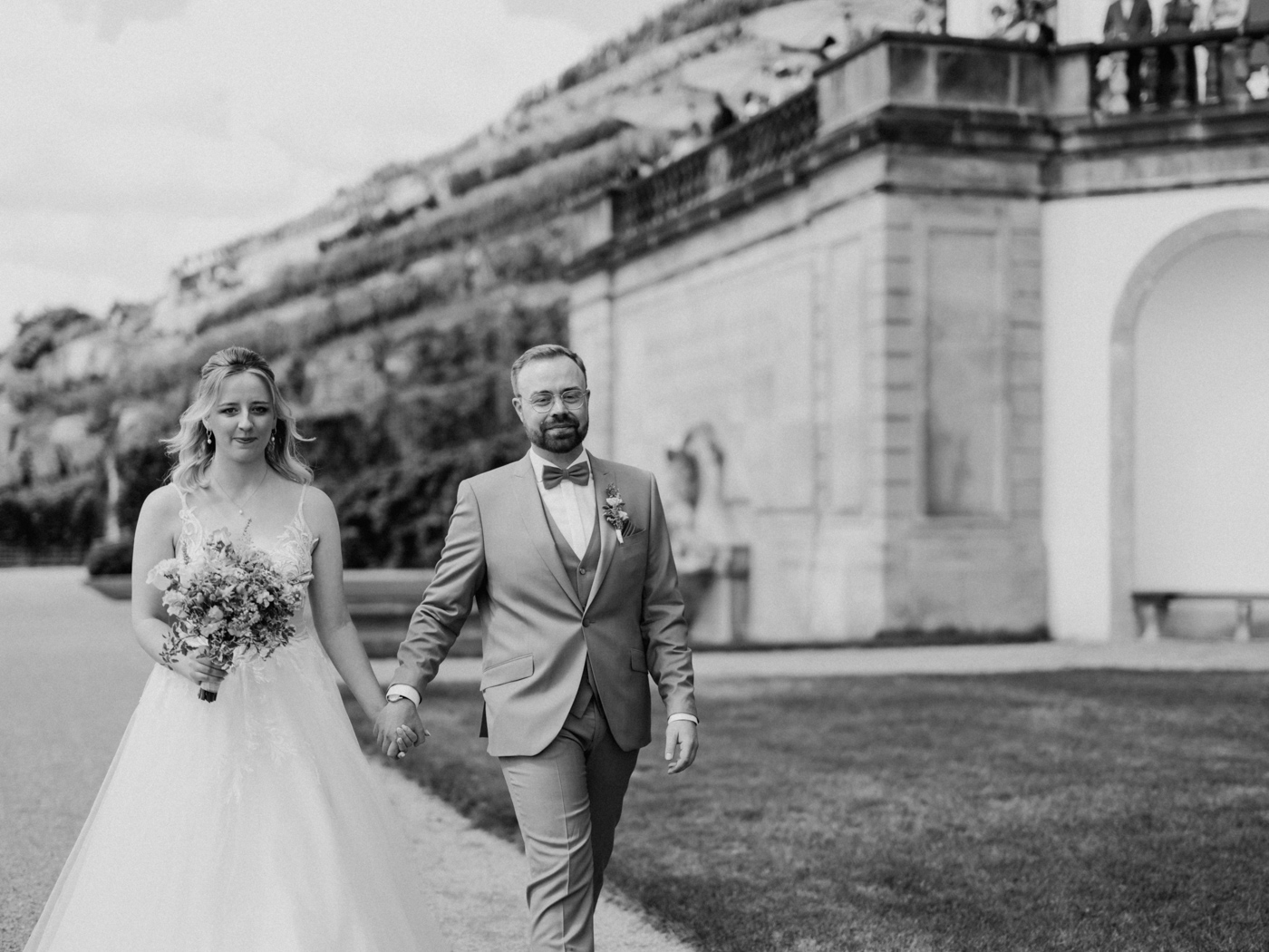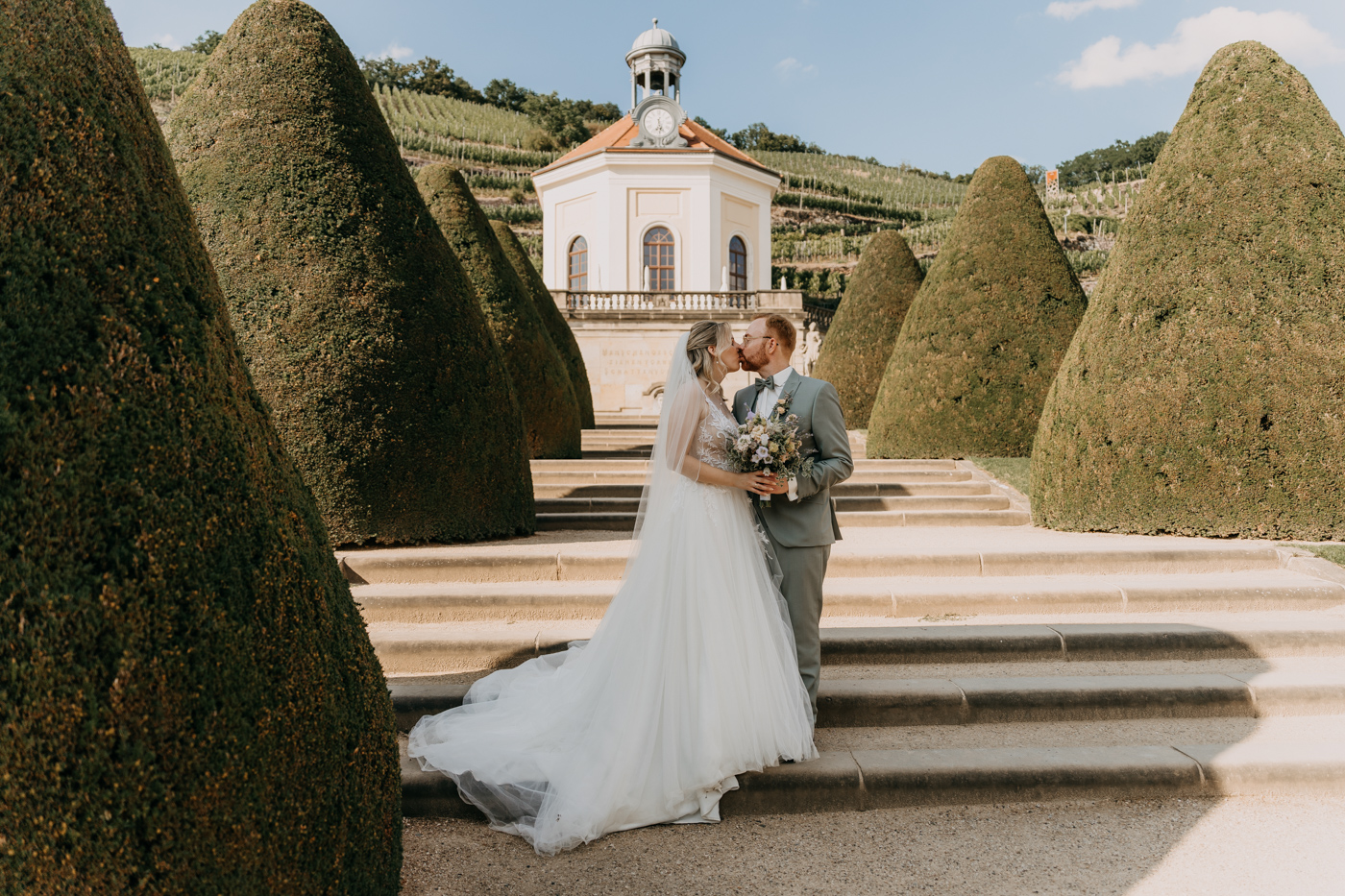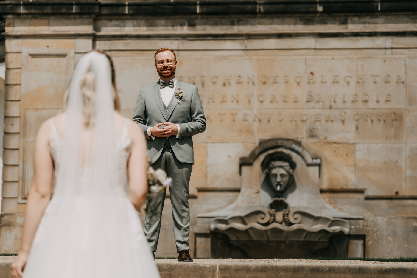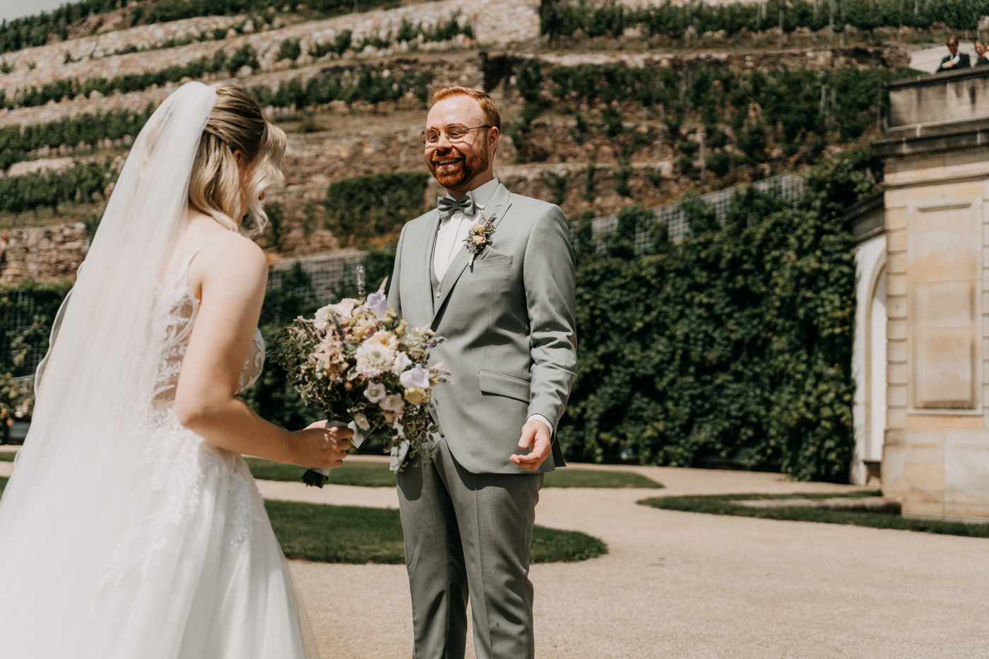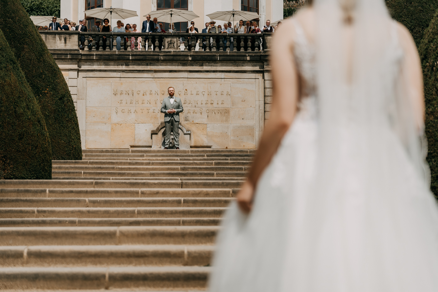 Im Juli 2025 durfte ich die Hochzeit von L & O im Schloss Wackerbarth begleiten. Los ging es mit ein paar entspannten Getting-Ready-Momenten (war eigentlich gar nicht extra als Fotomoment geplant), bevor es zum emotionalen First Look auf der langen Treppe zwischen Belvedere & Schloss kam – das ist immer super schön, weil es ein langer aber sehr emotionaler, schöner Weg bis zu seinem Lieblingsmenschen ist. Danach folgte die standesamtliche Trauung im Belvedere, persönlich und voller Gefühl. Gefeiert wurde anschließend direkt im Schloss Wackerbarth, mit guter Stimmung und viel Lachen!