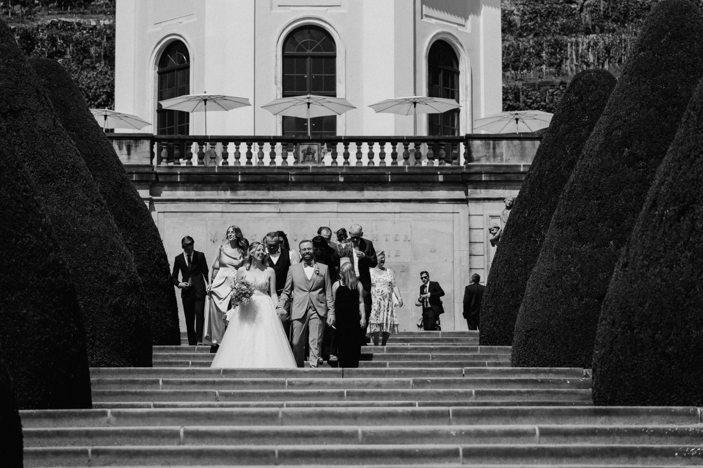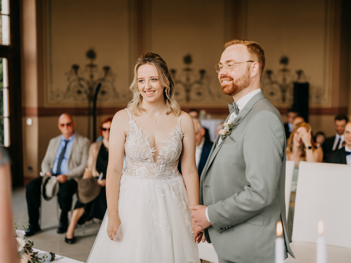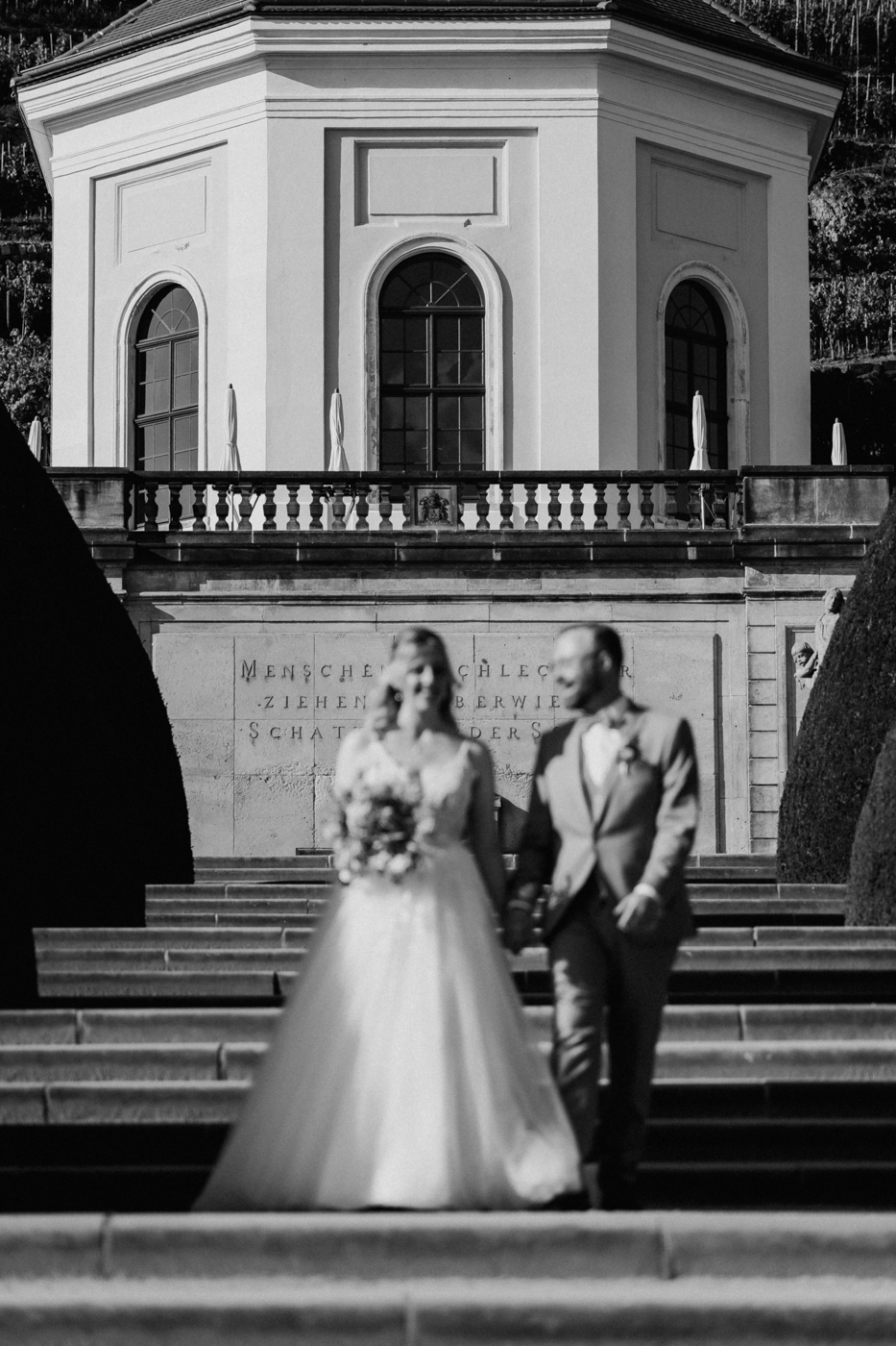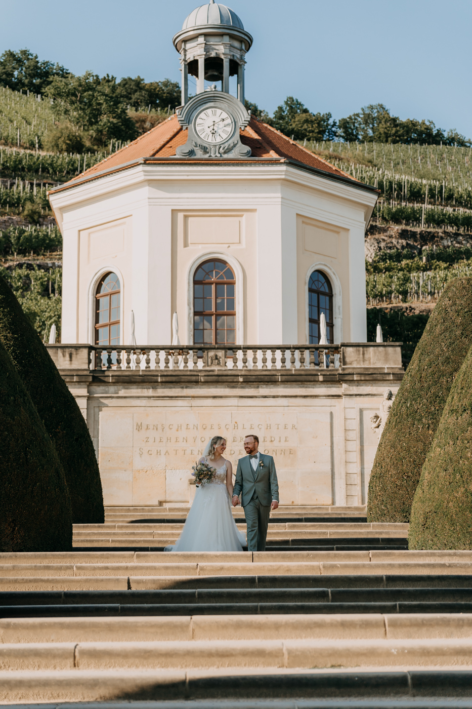 Im Juli 2025 durfte ich die Hochzeit von L & O im Schloss Wackerbarth begleiten. Los ging es mit ein paar entspannten Getting-Ready-Momenten (war eigentlich gar nicht extra als Fotomoment geplant), bevor es zum emotionalen First Look auf der langen Treppe zwischen Belvedere & Schloss kam – das ist immer super schön, weil es ein langer aber sehr emotionaler, schöner Weg bis zu seinem Lieblingsmenschen ist. Danach folgte die standesamtliche Trauung im Belvedere, persönlich und voller Gefühl. Gefeiert wurde anschließend direkt im Schloss Wackerbarth, mit guter Stimmung und viel Lachen!