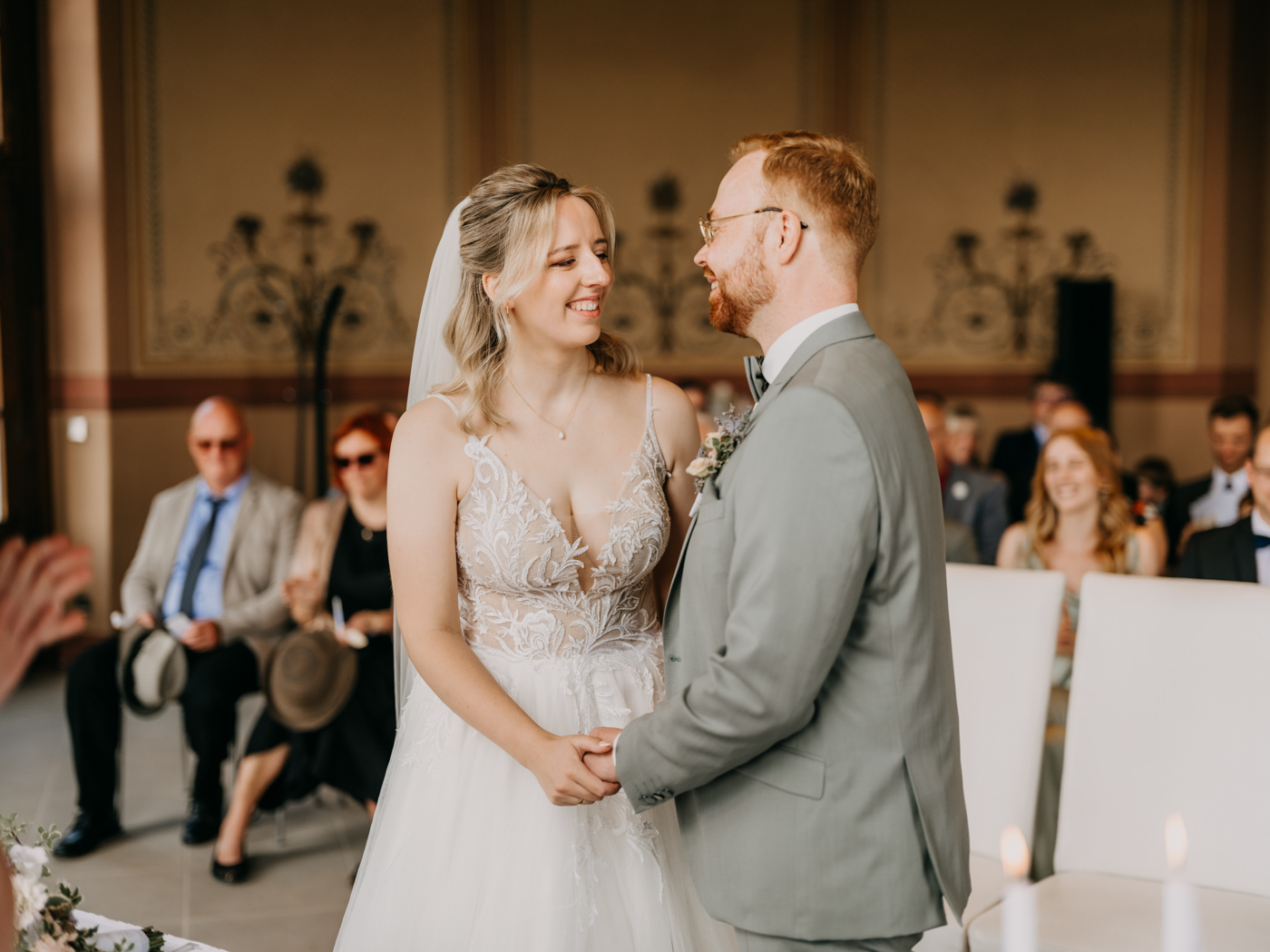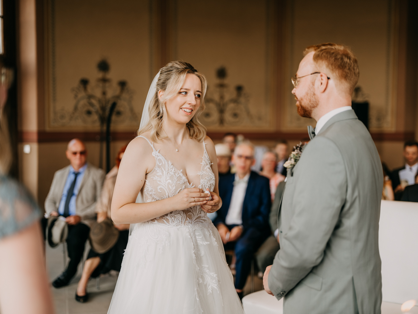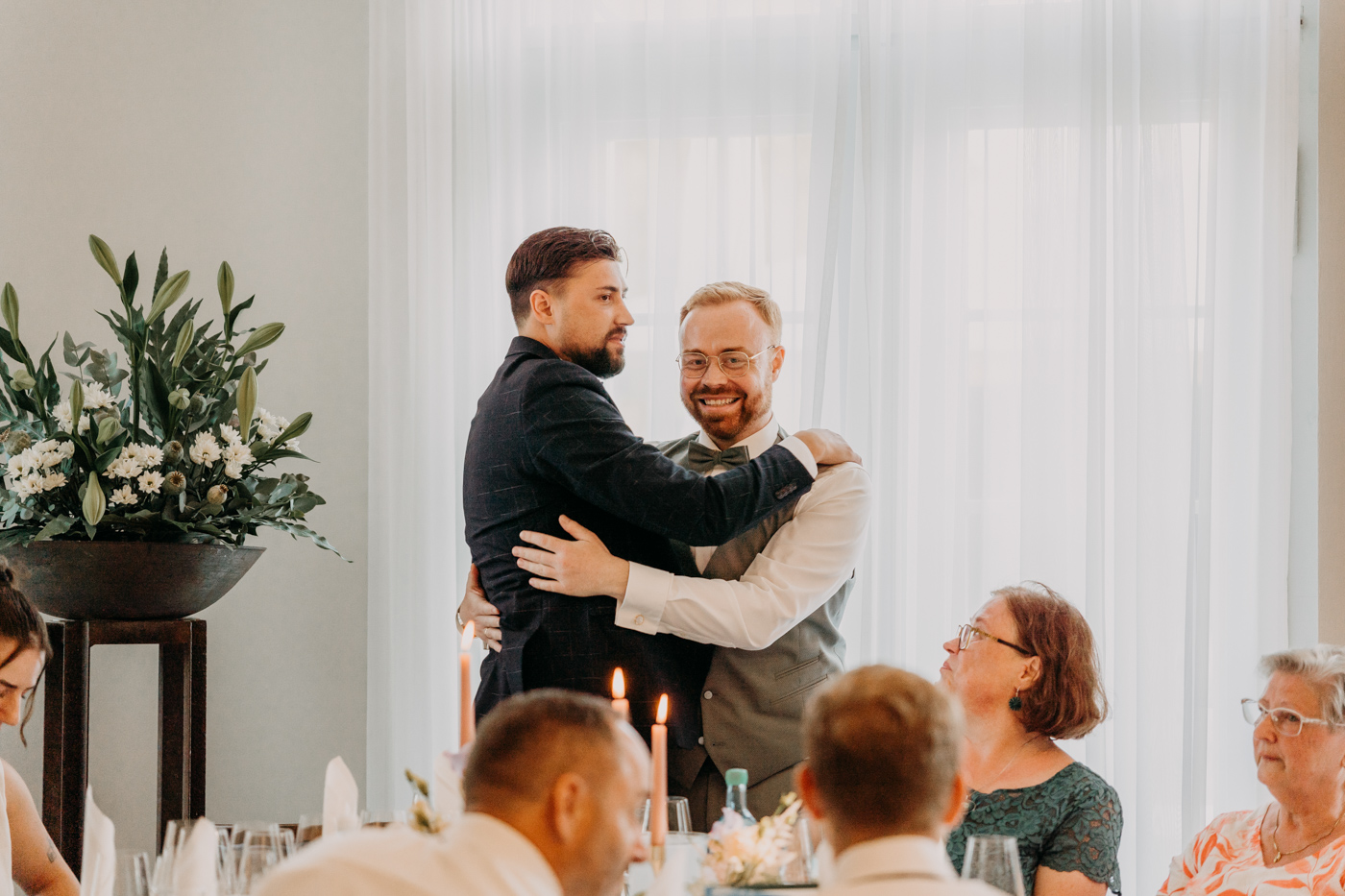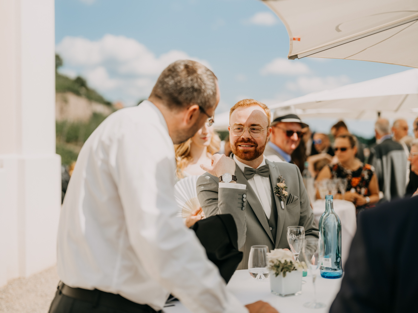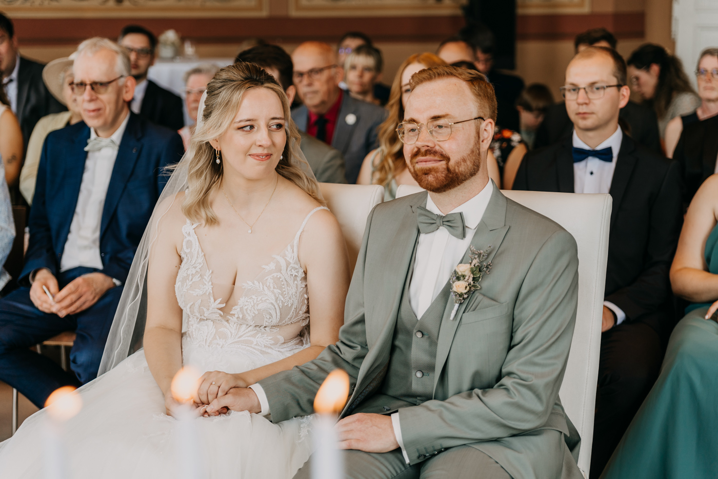 Im Juli 2025 durfte ich die Hochzeit von L & O im Schloss Wackerbarth begleiten. Los ging es mit ein paar entspannten Getting-Ready-Momenten (war eigentlich gar nicht extra als Fotomoment geplant), bevor es zum emotionalen First Look auf der langen Treppe zwischen Belvedere & Schloss kam – das ist immer super schön, weil es ein langer aber sehr emotionaler, schöner Weg bis zu seinem Lieblingsmenschen ist. Danach folgte die standesamtliche Trauung im Belvedere, persönlich und voller Gefühl. Gefeiert wurde anschließend direkt im Schloss Wackerbarth, mit guter Stimmung und viel Lachen!